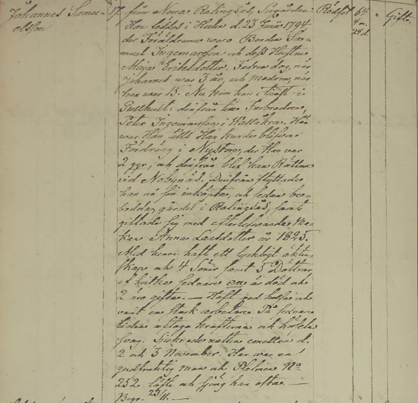 Kyrkoföreståndare 1846-05-01 i Sörgården, Norra Ralingsås, Lommaryd (F) 2 . Död 1858-11-17 i Sörgården, Norra Ralingsås, Lommaryd (F) 3 . |